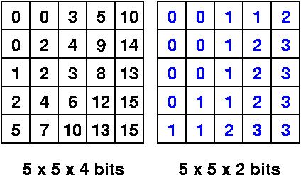 Note: the above images are greatly enlarged. A 5 x 5 pixel