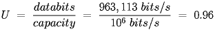You can try this formula for the example above for a few cases by modifying the parameters to see what you get. The following shows the change in utilization as the message length increases.