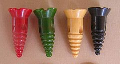 During wartime Bakelite was used to outfit the American military. The reason that Bakelite had become obsolete, although extremely cheap when it was made, was due to newer and more efficient refined plastics in the 1950’s. Collectors of antique Bakelite buttons and Bakelite jewelry can ask for as much as $1500 per piece, depending on its rarity and condition. Visit me and have your professional appraisal done on your Bakelite buttons at the: National Button Society Convention