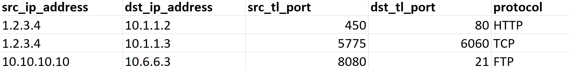 dst_ip_address are the source transport layer port, and destination transport layer ports of the packet, respectively. The