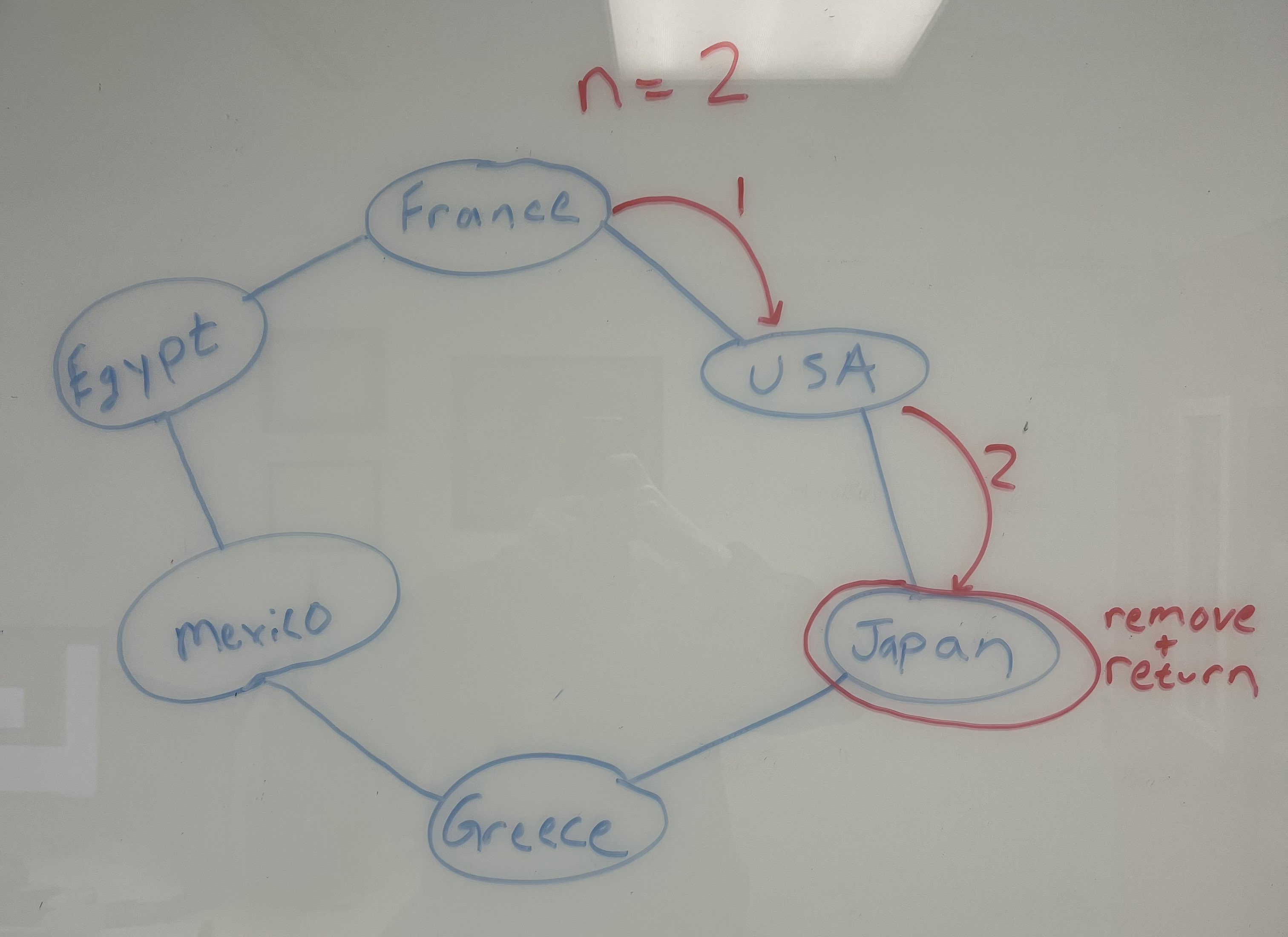 You might be confused regarding why Egypt or Japan was selected to remove. Here is a visualization of the linked list, and how it was determined which node was removed: