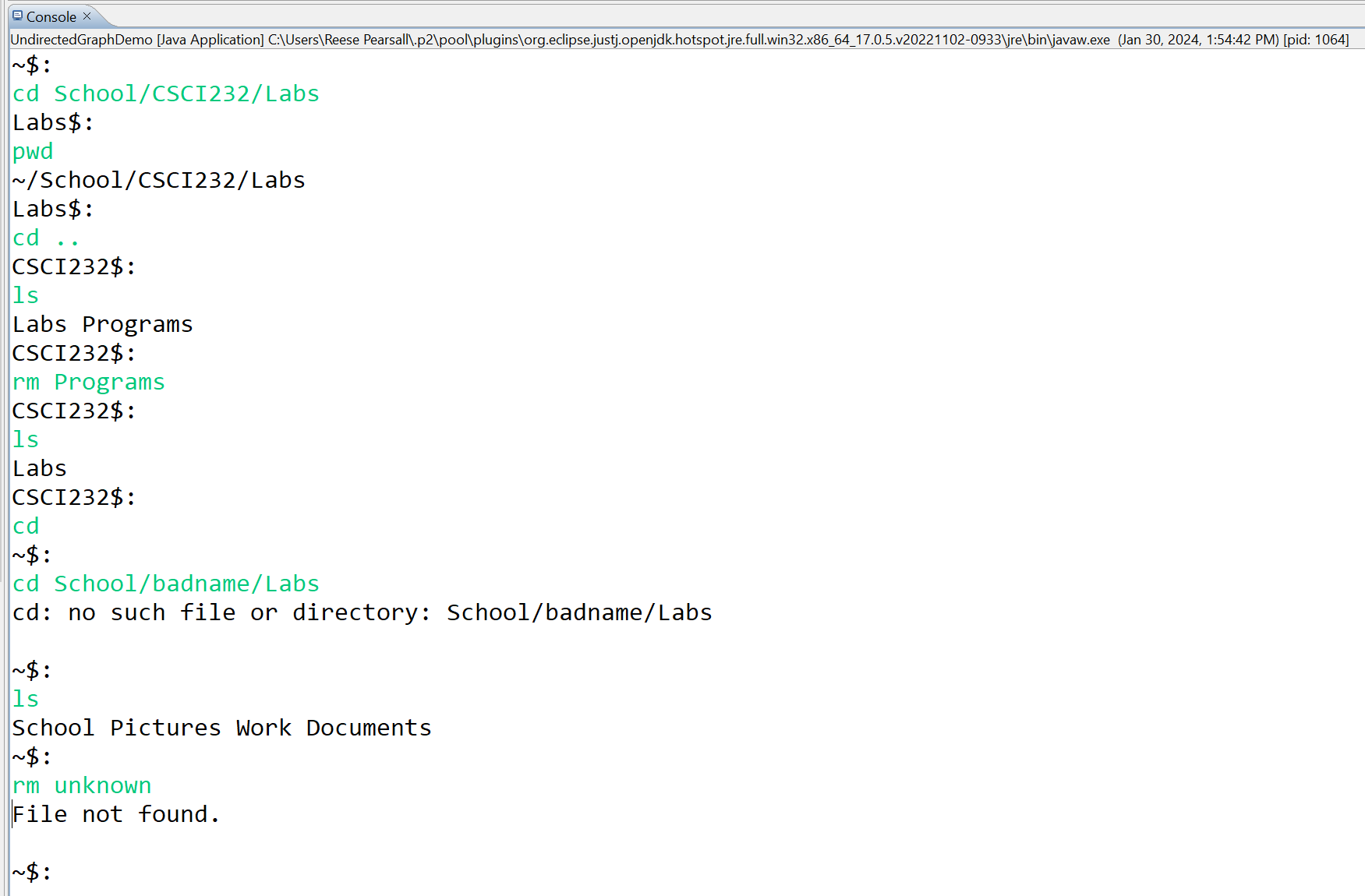 String that shows the path from the root to current directory (e.g., ~/School/CSCI232/Labs)