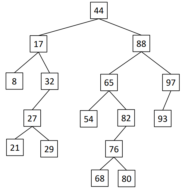 This is how the BST looks after a series of inserting nodes: